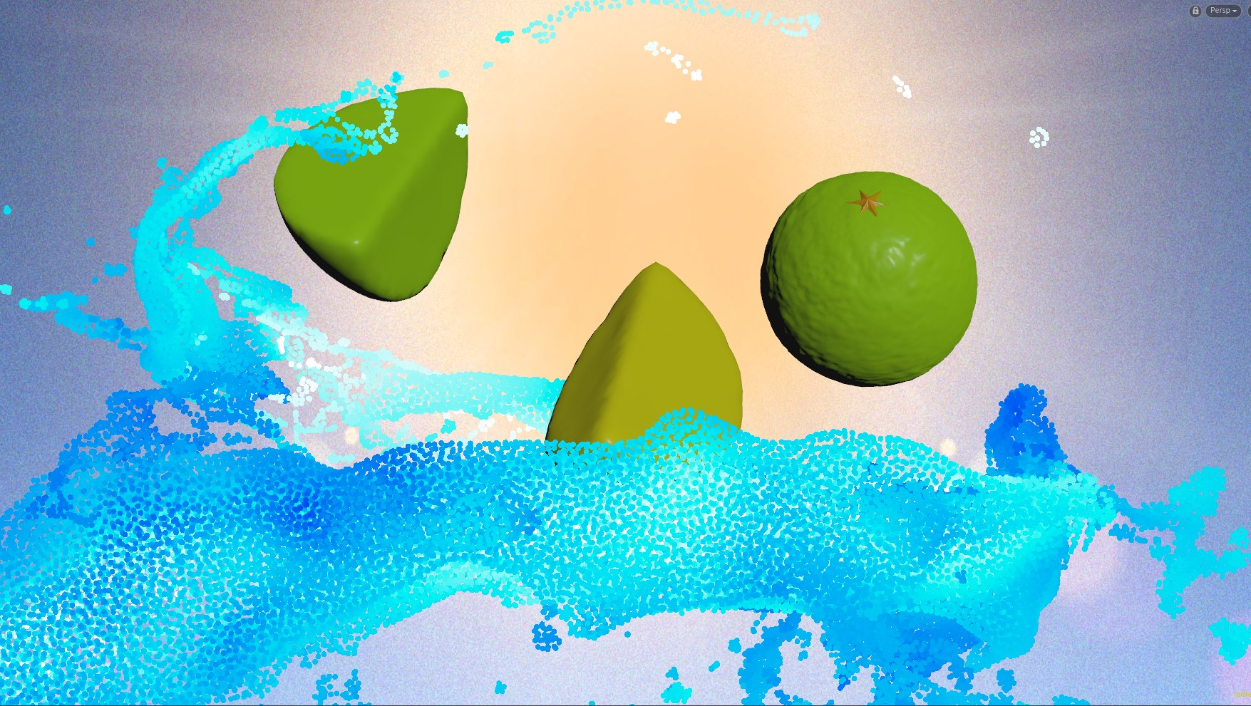 Investigating the feel and timing of the water droplets following the fruits in Houdini's initial condensation setup.